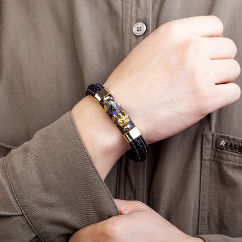 Indulge in luck and protection with our Pi Xiu Guardian Bracelet. Crafted with genuine leather and adorned with a charming gold Pi Xiu charm, this bracelet is a symbol of fortune and prosperity. Designed for both men and women, it serves as a protective talisman, warding off negative energies. Let the enchanting charm of this exquisite bracelet accompany you on your journey, bringing luck and blessings into your life.